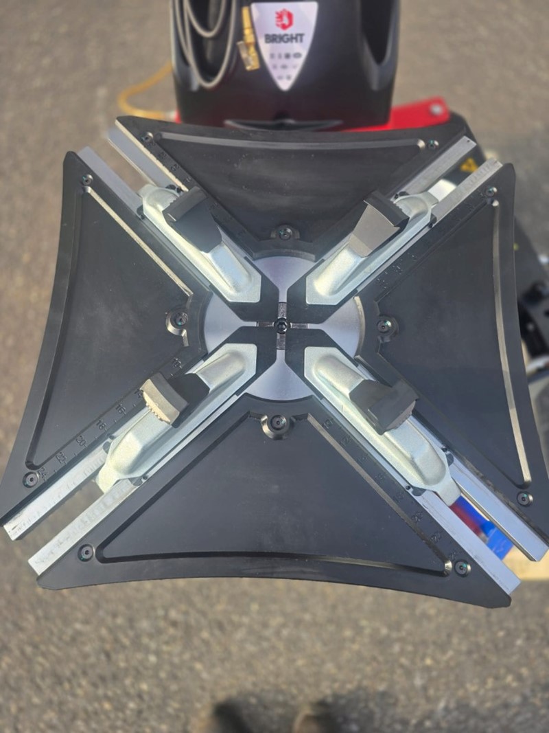 Selbstzentrierendes 4 Fach-Spannklauensystem mit zwei starken pneumatischen Spannzylindern.