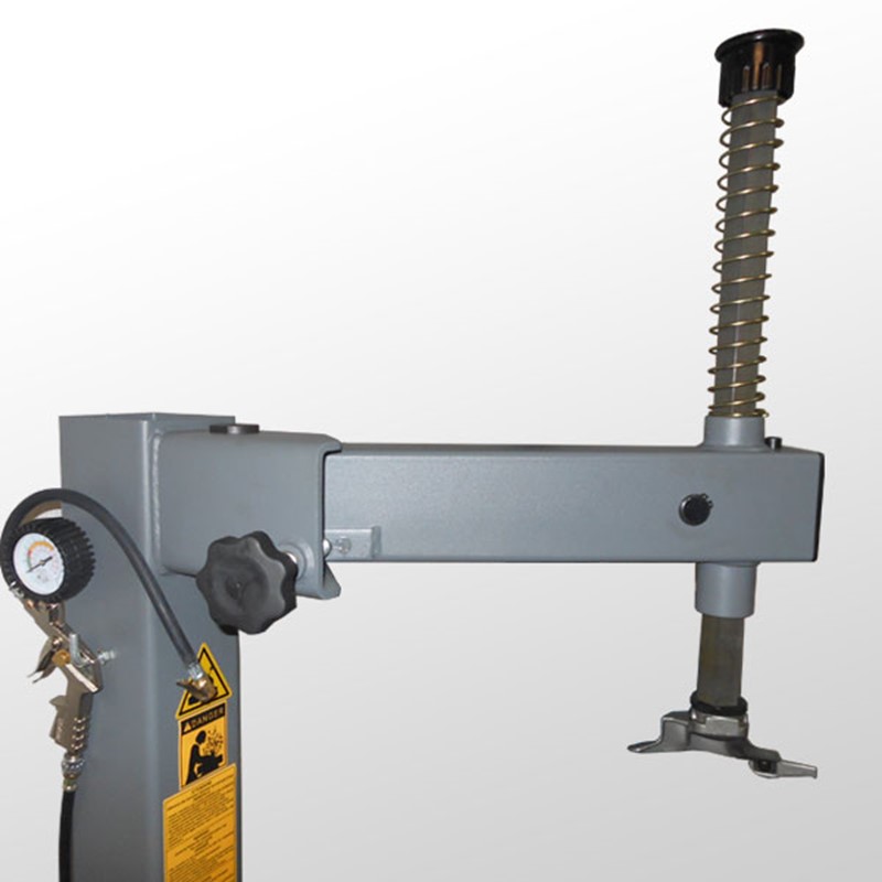 Halbautomatische Reifenmontiermaschine mit manuell schwenkbarem Montagearm in robuster Ausführung.